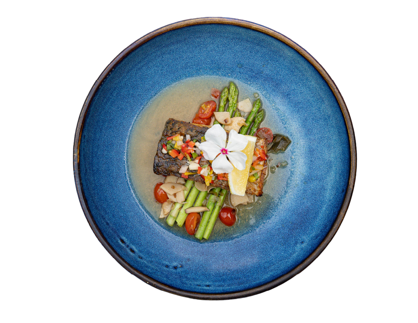 Grilled free-range chicken and Phuket pineapple, hydroponics greens, cherry tomato, garlic and balsamic soy sauce