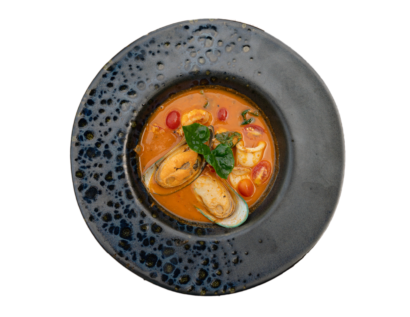 Andaman seafood, spicy Tom Yam sauce and mozzarella cheese